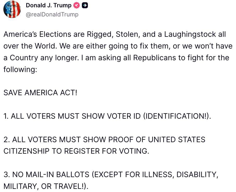 ამერიკის გადარჩენის აქტი - ტრამპი საარჩევნო კანონმდებლობის გამკაცრების მოთხოვნით გამოდის