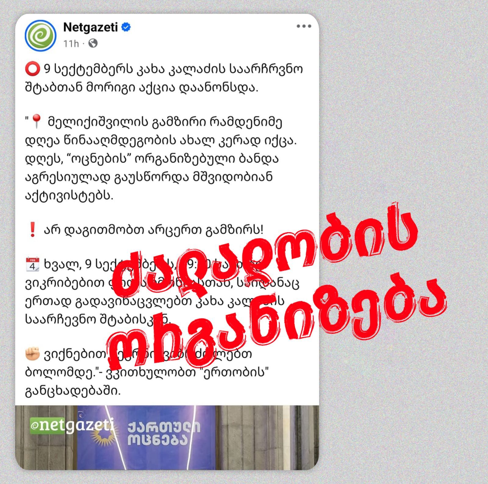 ამ პროცესში, ზოგიერთი უცხოელი დიპლომატის მიერ წაქეზებული ექსტრემისტი ჯგუფების გარდა, ჩართული ჰყავთ გარედან დაფინანსებული პროპაგანდისტული პლატფორმები, მათ შორის ბრიუსელის მიერ დაფინანსებული "ნეტგაზეთი", რომელიც არა მარტო ძალადობის პროპაგანდას უზრუნველყოფს, არამედ თავადვე აორგანიზებს ძალადობრივ თავდასხმას "ქართული ოცნების" საარჩევნო შტაბზე.