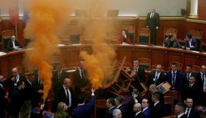 ალბანეთის ოპოზიციონერმა დეპუტატმა პლენარული სესიის დროს ფერადი კვამლი გაუშვა და ფურცლები დაწვა