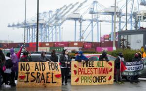 ვაშინგტონში შეკრებილი მომიტინგეები ისრაელში მიმავალი ამერიკული სამხედრო გემის ბლოკირებას ცდილობენ